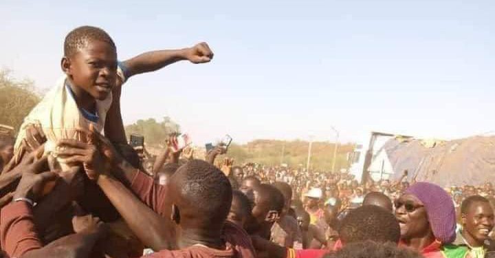 Düşen İHA, öfkeli kalabalık tarafından parçalanırken, çocuk ise bir anda Burkina Faso’nun ulusal kahramanı oldu.