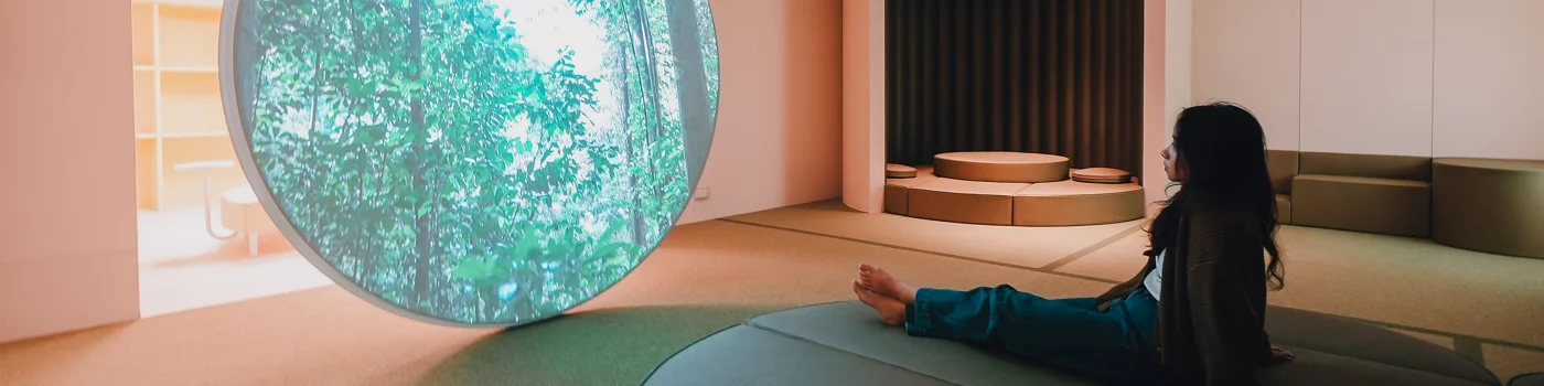 Terminal 2’nin gidiş-dönüş aktarma alanında bulunan yeni Calm Room, daha kapsayıcı bir seyahat deneyimi yaratmayı amaçlayan CARE@Changi programı kapsamındaki en yeni girişim.